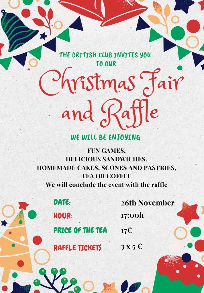 We are pleased to inform you that on Wednesday, 26th November 2025 at 5:00 p.m. we will be holding our traditional Christmas Afternoon Tea and Raffle.